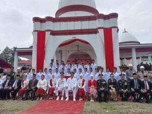 MEDIONET, BOLSEL – Pemerintah Kabupaten (Pemkab) Bolaang Mongondow Selatan (Bolsel), Sabtu (17/8/2024) menggelar upacara peringatan Hari Ulang Tahun (HUT) Kemerdekaan Republik Indonesia (RI) ke-79. Peringatan HUT Kemerdekaan RI ke-79 ini digelar di alun-alun Molibagu, Kecamatan Bolaang Uki. Upacara tersebut berlangsung khidmat dan penuh cuka cita.