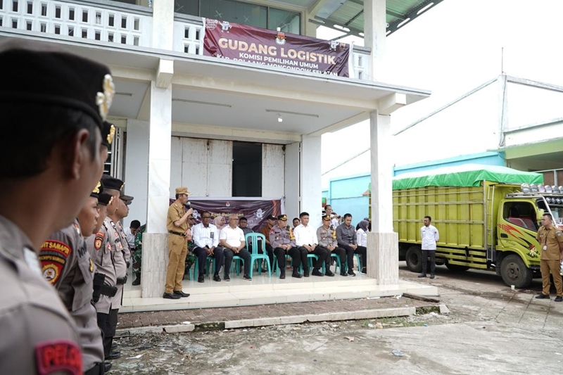 MEDIONET, BOLSEL – Jelang Pemilihan Umum (Pemilu) 2024, Bupati Bolaang Mongondow Selatan (Bolsel), H. Iskandar Kamaru, Senin (12/2/2024) melepas distribusi logistik Pemilu Tahun 2024 di gudang logistik KPUD Bolsel, Desa Popodu, Kecamatan Bolang Uki.