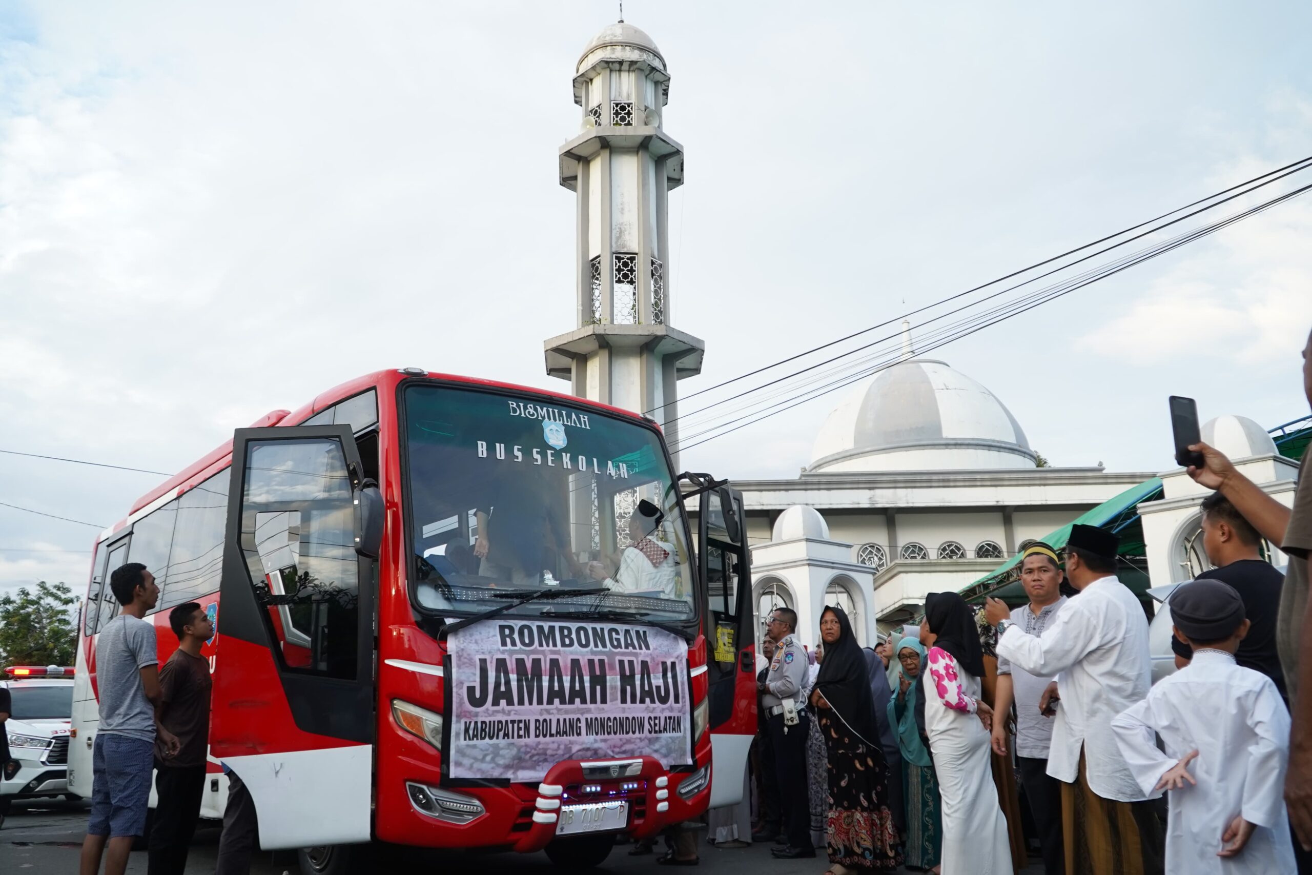 MEDIONET, BOLSEL – Bupati Bolaang Mongondow Selatan (Bolsel) Hi. Iskandar Kamaru, Kamis (16/5/2024), melepas Rombongan Jamaah Calon Haji (JCH) Kabupaten Bolsel tahun 1445 Hijiriah ke tanah suci.