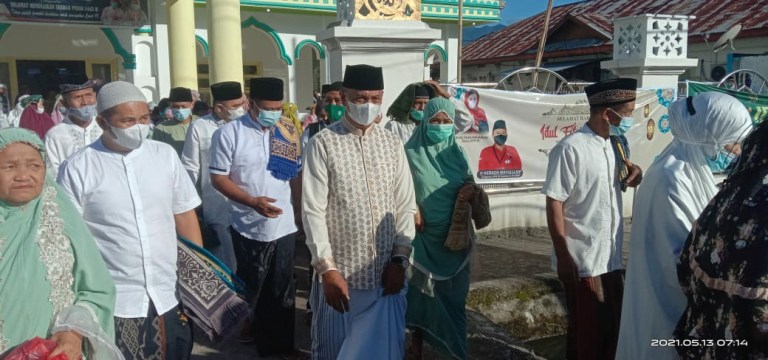 “Alhamdulillah meskipun kita masih dalam masa pandemi Covid-19, kita tetap diberikan kesempatan hadir bersama, sholat Idul Fitri di hari kemenangan dalam melawan hawa nafsu di bulan Ramadhan. Virus ini salah satu ujian dan kematian yang pasti. Makanya tanpa ilmu agama kita tidak ada apa-apanya dalam hidup. Makanya mari kita sama-sama bersyukur, telah menjalankan segala perintahnya dan saling memaafkan di momentum Idul Fitri,” kata Supardi dalam khotbahnya.