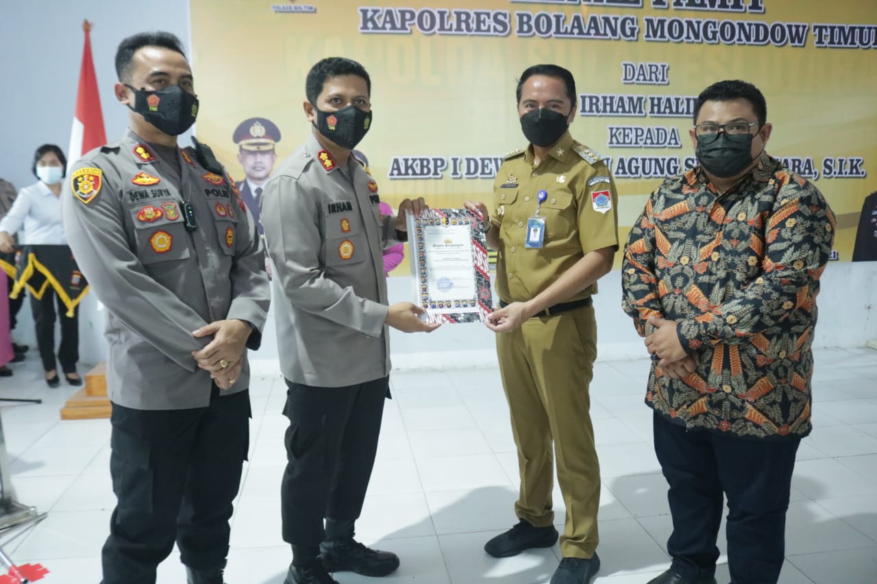 MEDIOnet, BOLTIM – Bupati Bolaang Mongondow Timur (Boltim) Sam Sachrul Mamonto, Selasa (23/11/2021) menghadiri kegiatan Kenal Pamit Kapolres Boltim yang lama AKBP. Irham Halid SIK dengan Kapolres baru AKBP. I Dewa Nyoman Agung Surya Negara SIK, bertempat di Mapolres Boltim Tutuyan.