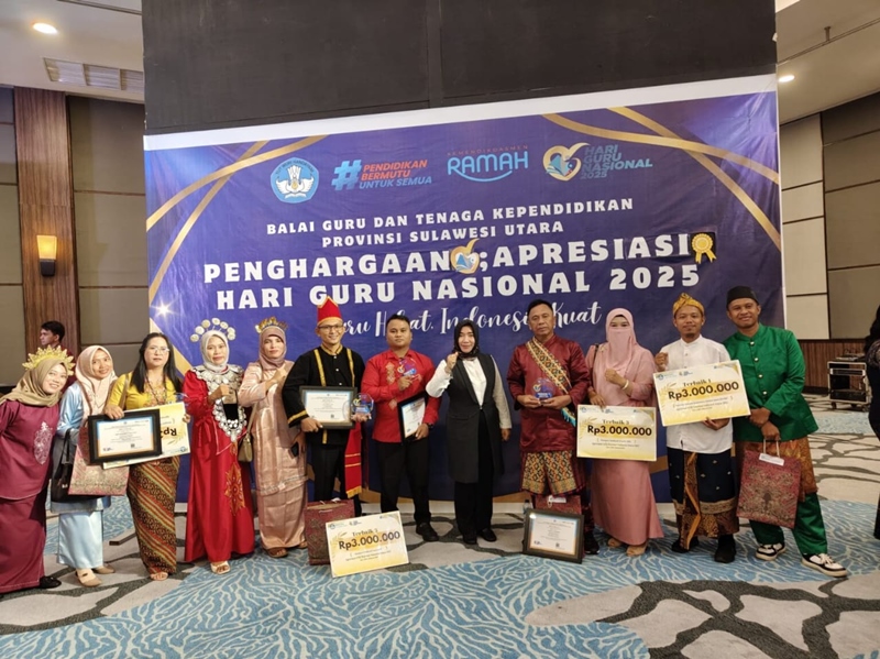 Kegiatan yang digelar Balai Guru dan Tenaga Kependidikan (BGTK) Sulut ini, bertempat di Tateli Resort and Convention Manado, Sabtu (8/11/2025). Kegiatan ini menjadi momen istimewa bagi Bolsel, karena prestasi membanggakan yang berhasil diraih para guru-guru daerah.