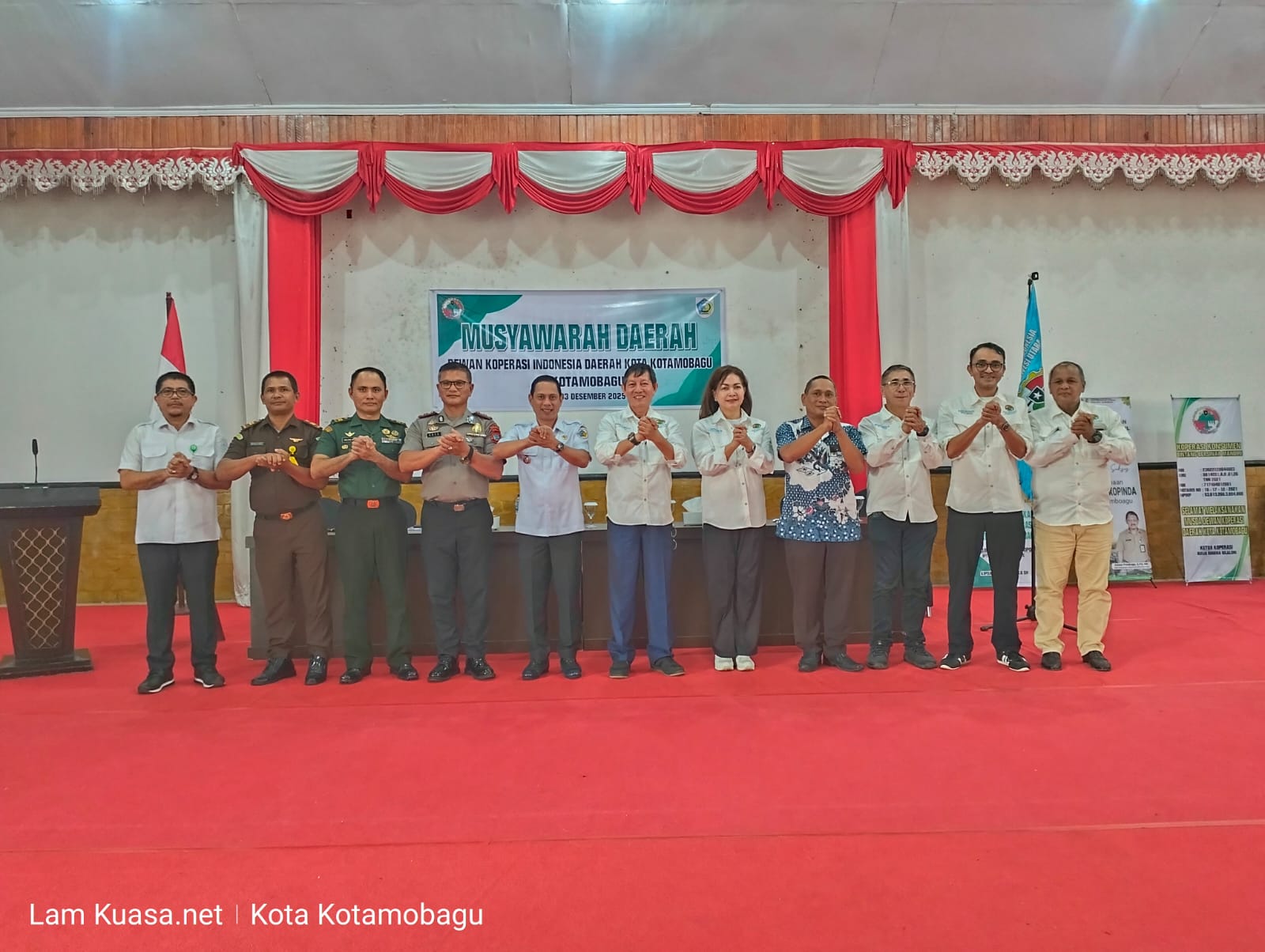 Musda Dekopinda Kota Kotamobagu, dihadiri Ketua Dewan Koperasi Indonesia Wilayah Sulawesi Utara, G.S. Vicky Lumentut Perwakilan Forkopimda Kota Kotamobagu, Sekretaris Dewan Koperasi Indonesia Wilayah Sulawesi Utara, Christiana Pusung para Asisten dan Pimpinan Organisasi Perangkat Daerah di lingkungan Pemerintah Kota Kotamobagu, para Pimpinan Perguruan Tinggi di Kota Kotamobagu, para pengurus Dewan Koperasi Indonesia Wilayah Sulawesi Utara, Pengurus Dewan Koperasi Indonesia Daerah Kota Kotamobagu, serta para pengurus Koperasi se – Kota Kotamobagu. (Adv/Andong)