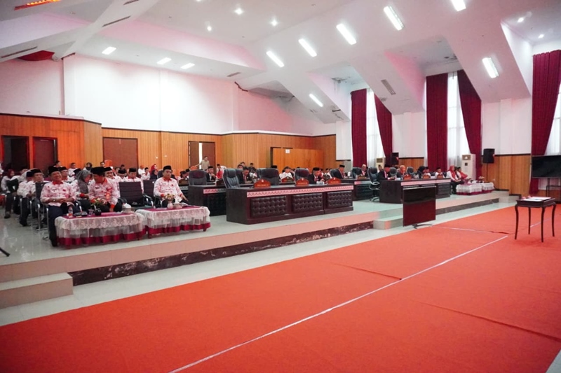 Rapat paripurna tersebut berlangsung di ruang sidang DPRD dan dipimpin Wakil Ketua DPRD Ridwan Olii bersama Djefry Jauhari, serta dihadiri langsung Bupati Bolsel Hi. Iskandar Kamaru.,S.Pt,M.Si, dan Anggota DPRD, para Asissten, pimpinan OPD, Camat dan para ASN.
