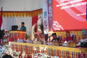 Sementara itu, Bupati Bolsel H. Iskandar Kamaru, dalam sambutannya menyampaikan bahwa momentum historis HUT ke-16 Bolsel, harus semakin menggugah hati nurani selaku komponen masyarakat untuk berpartisipasi aktif dalam memajukan daerah sesuai dengan bidang tugas masing-masing.