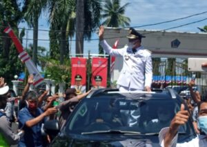 MEDIONET, BOLTIM – Pasca dilantik oleh Gubernur Sulawesi Utara (Sulut) Olly Dondokambey pada Jumat (26/02), sebagai Bupati dan Wakil Bupati Bolaang Mongondow Timur (Boltim) periode 2021-2024, Sam Sachrul Mamonto,S.Sos dan Oscar Manoppo, Sabtu (27/02) di sambut dengan prosesi adat Bolaang Mongondow yang berlangsung di pintu gerbang Boltim, tepatnya di Desa Moyongkota Kecamatan Modayag Barat.